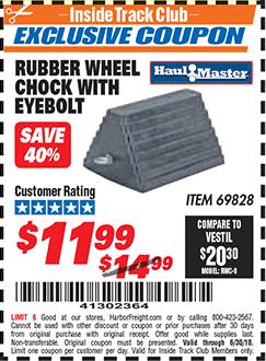 ITC HAUL-MASTER WHEEL CHOCK WITH EYEBOLT Lot No. 69828 Expired: 12/18/18 - $11.99 Coupon Code: '40753974'