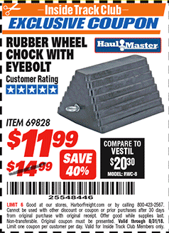 ITC HAUL-MASTER WHEEL CHOCK WITH EYEBOLT Lot No. 69828 Expired: 6/30/15 - $12.99 Coupon Code: '89610634'