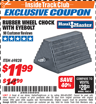 ITC HAUL-MASTER WHEEL CHOCK WITH EYEBOLT Lot No. 69828 Expired: 3/3/20 - $9.99 Coupon Code: '58071930'