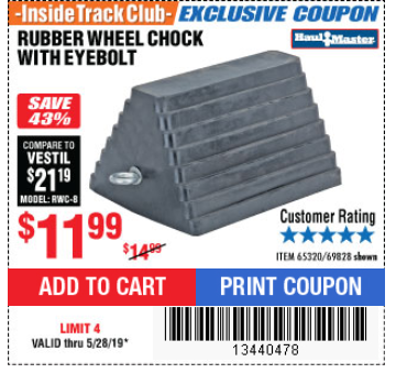 ITC HAUL-MASTER WHEEL CHOCK WITH EYEBOLT Lot No. 69828 Expired: 5/31/19 - $11.99 Coupon Code: '47968977'