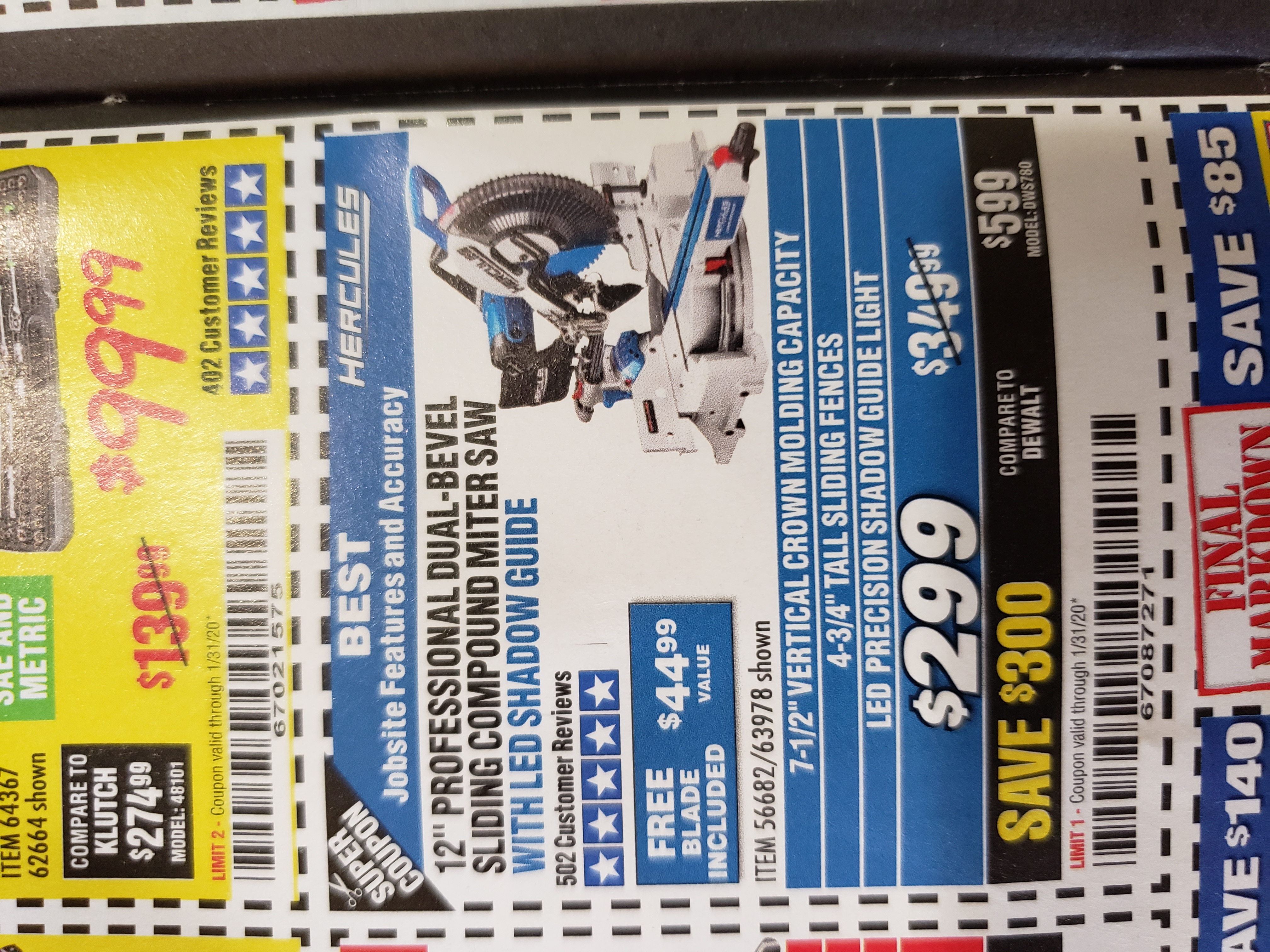 HERCULES 12 IN. DUAL-BEVEL SLIDING COMPOUND MITER SAW WITH PRECISION LED SHADOW GUIDE Lot No. 56682/63978 Expired: 1/31/20 - $299.99 Coupon Code: '67087271'