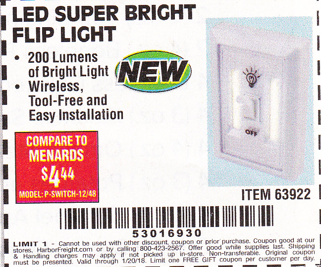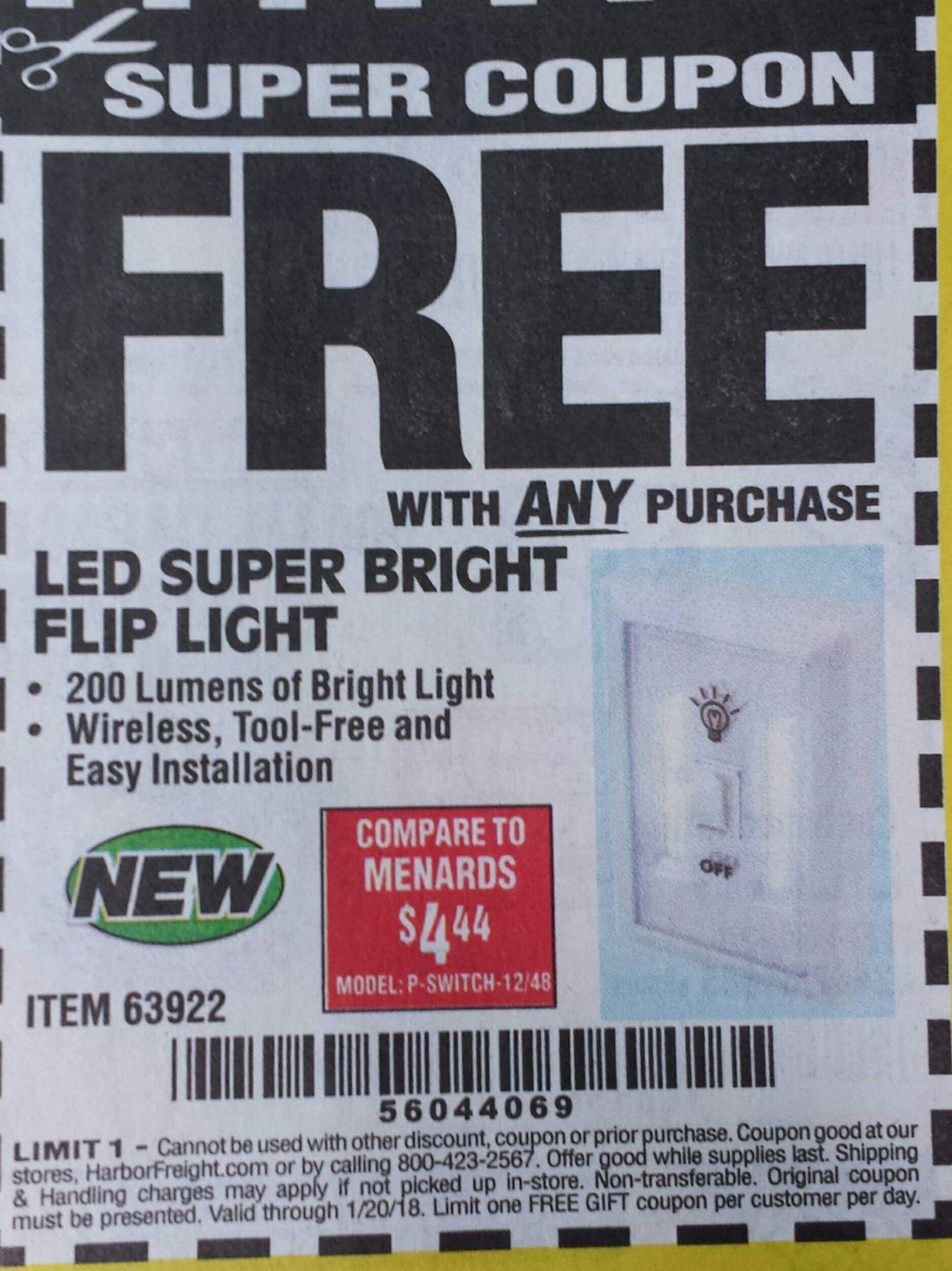 FREE 200 LUMEN LED SUPER-BRIGHT FLIP LIGHT Lot No. 64723/63922 Expired: 1/20/18 - FWP Coupon Code: '56044069'
