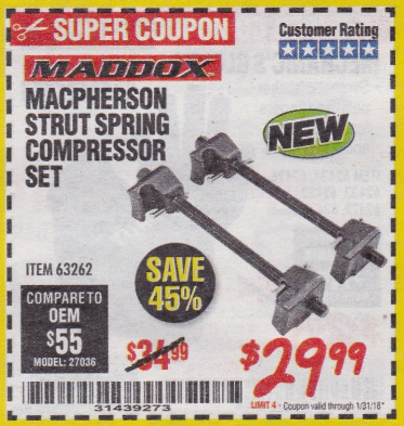 MADDOX MACPHERSON STRUT SPRING COMPRESSOR SET Lot No. 63262 Expired: 1/31/18 - $29.99 Coupon Code: '31439273'