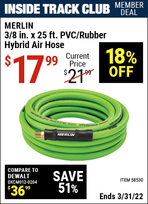 ITC MERLIN 3/8 IN. X 25 FT. PVC/RUBBER Lot No. 58530 Expired: 3/31/22 - $17.99 Coupon Code: 'n/a'