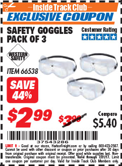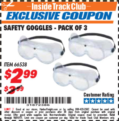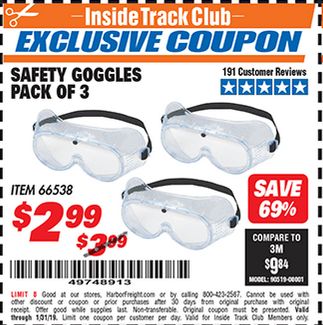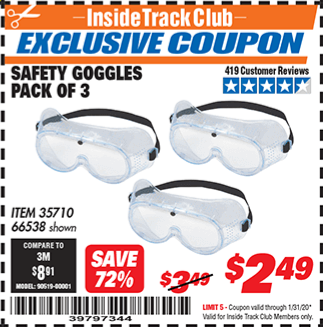 ITC SAFETY GOGGLES PACK OF 3 Lot No. 94027 Expired: 10/31/17 - $2.99 Coupon Code: '31872386'