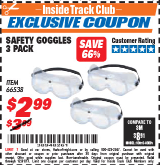 ITC SAFETY GOGGLES PACK OF 3 Lot No. 94027 Expired: 12/31/17 - $2.99 Coupon Code: '38948261'