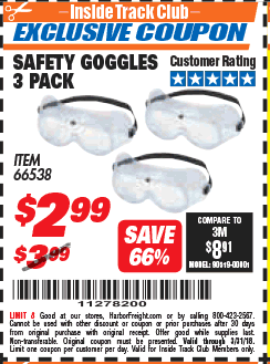 ITC SAFETY GOGGLES PACK OF 3 Lot No. 94027 Expired: 3/31/18 - $2.99 Coupon Code: '11278200'