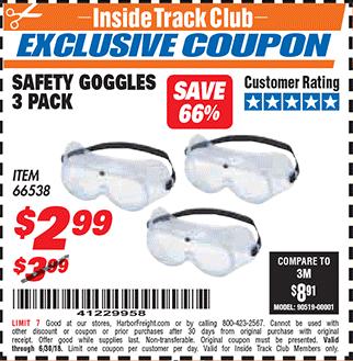 ITC SAFETY GOGGLES PACK OF 3 Lot No. 94027 Expired: 4/29/21 - $2.49 Coupon Code: '17570886'