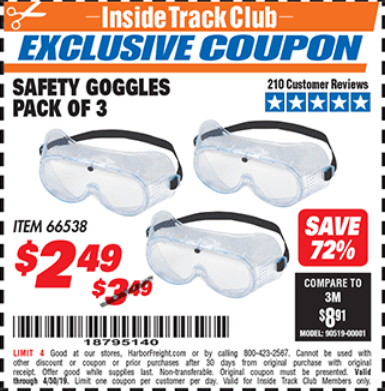 ITC SAFETY GOGGLES PACK OF 3 Lot No. 94027 Expired: 4/30/19 - $2.49 Coupon Code: '18795140'