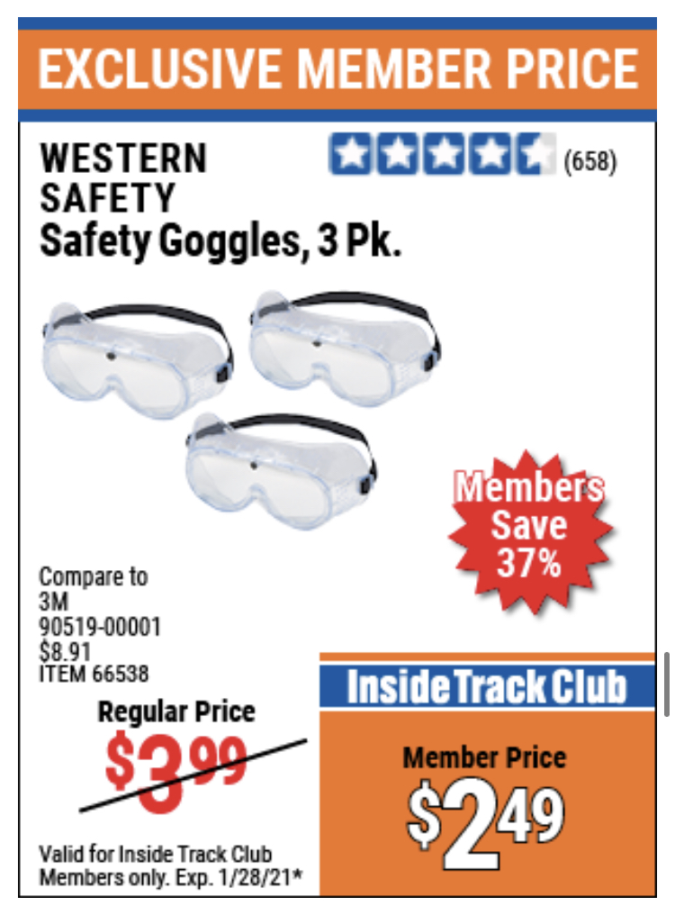 ITC SAFETY GOGGLES PACK OF 3 Lot No. 94027 Expired: 1/28/21 - $2.49 Coupon Code: 'n/a'