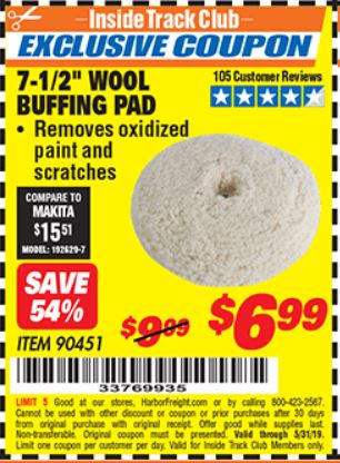 ITC SM ARNOLD 7-1/2 IN WOOL BUFFING PAD Lot No. 90451 Expired: 5/31/19 - $6.99 Coupon Code: '33769935'
