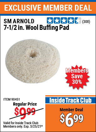 ITC SM ARNOLD 7-1/2 IN WOOL BUFFING PAD Lot No. 90451 Expired: 3/25/21 - $6.99 Coupon Code: 'n/a'