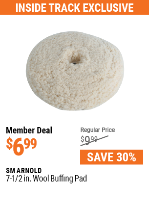 SM ARNOLD 7-1/2 IN WOOL BUFFING PAD Lot No. 90451 Expired: 10/10/24 - $7.99 Coupon Code: 'n/a'