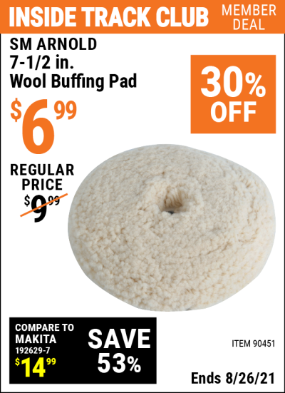 ITC SM ARNOLD 7-1/2 IN WOOL BUFFING PAD Lot No. 90451 Expired: 8/26/21 - $6.99 Coupon Code: 'n/a'