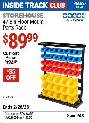 STOREHOUSE 47-BIN FLOOR-MOUNT PARTS RACK Lot No. 95736/61166 Expired: 3/31/15 - $69.99 Coupon Code: '74129354'
