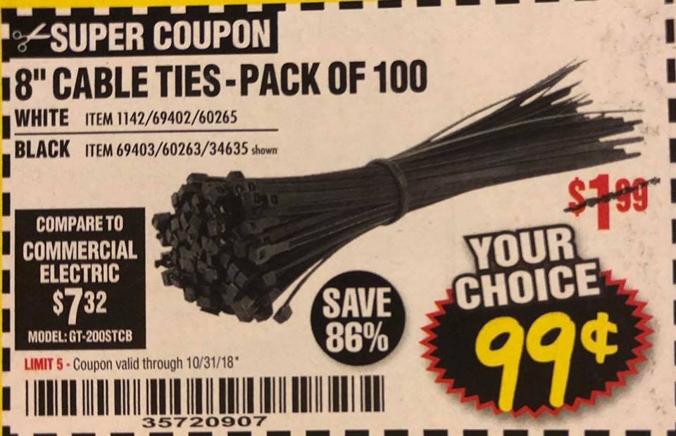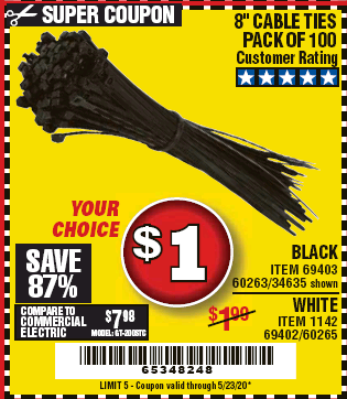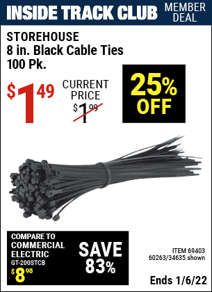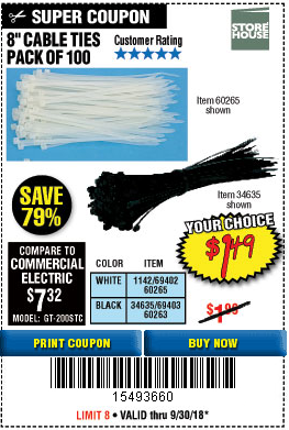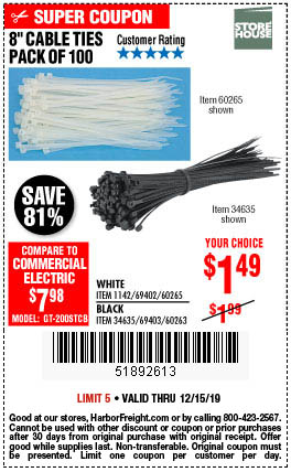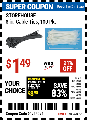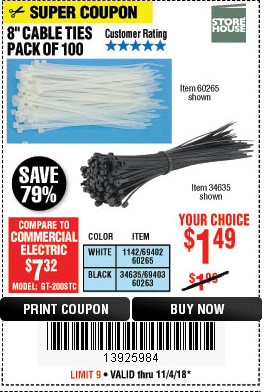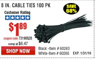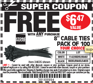 FREE STOREHOUSE 8 IN. CABLE TIES, 100-PACK Lot No. 1142/69402/60265/34635/69403/60263 Expired: 2/28/15 - FWP Coupon Code: '61145102'