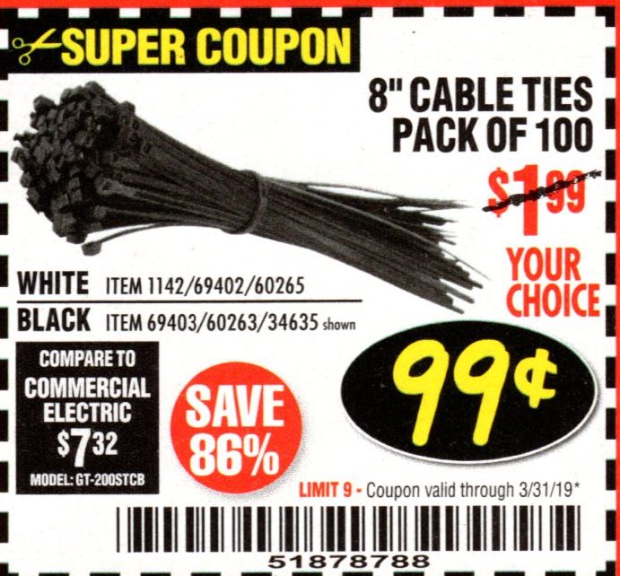 STOREHOUSE 8 IN. CABLE TIES, 100-PACK Lot No. 1142/69402/60265/34635/69403/60263 Expired: 3/31/19 - $0.99 Coupon Code: '51878788'