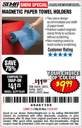 U.S. GENERAL MAGNETIC PAPER TOWEL HOLDER Lot No. 64645/57283/56454/56455/56456/56457/69321 Expired: 11/24/19 - $9.99 Coupon Code: '49461105'