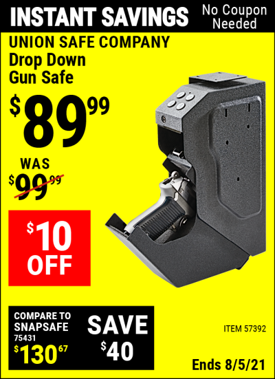 UNION SAFE COMPANY DROP DOWN GUN SAFE Lot No. 57392 Expired: 8/5/21 - $89.99 Coupon Code: 'n/a'