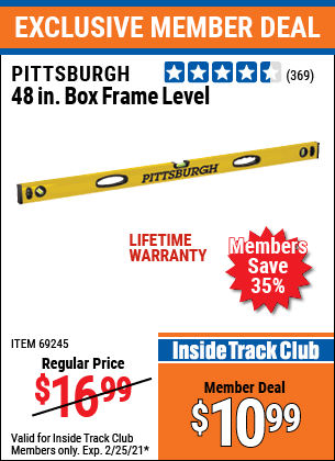ITC 48" BOX FRAME LEVEL Lot No. 92994/69245 Expired: 2/28/21 - $10.99 Coupon Code: 'n/a'