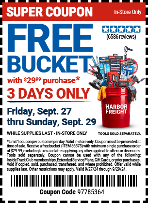 FREE 5 GALLON BUCKET Lot No. 47523 Expired: 9/29/24 - FWP Coupon Code: '97785364'