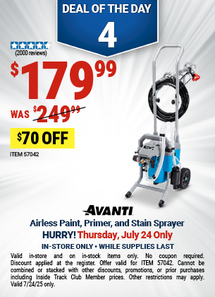 ITC AVANTI AIRLESS PAINT, PRIMER, AND STAIN SPRAYER Lot No. 57042 Valid Thru: 1/15/26 - $199.99 Coupon Code: 'n/a' (current price - 20% = 0) add to list