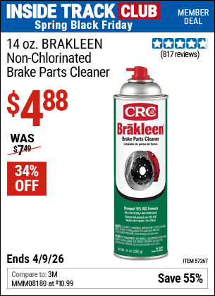 CRC 14 OZ. BRAKLEEN NON-CHLORINATED BRAKE PARTS CLEANER Lot No. 57267 Expired: 4/9/26 - $4.99 Coupon Code: 'n/a'
