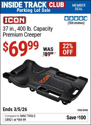 ICON 37 IN., 400 LB. CAPACITY PREMIUM CREEPER, BLACK Lot No. 58588 Expired: 2/1/26 - $74.99 Coupon Code: '22093005'
