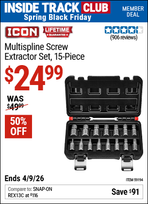 ICON MULTISPLINE SCREW EXTRACTOR SET, 15-PIECE Lot No. 59194 Expired: 4/12/26 - $24.99 Coupon Code: 'n/a'
