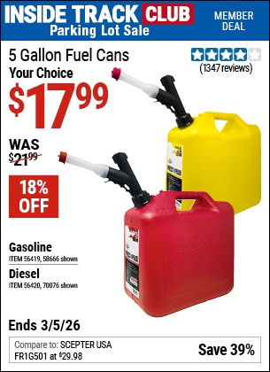 ITC MIDWEST CAN 5 GALLON FUEL CANS Lot No. 56419/56420/58666/70076 Expired: 3/5/26 - $17.99 Coupon Code: 'n/a'