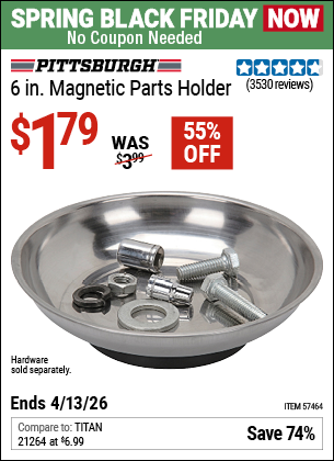 PITTSBURGH 6 IN. MAGNETIC PARTS HOLDER Lot No. 57464 Expired: 10/23/22 - $1.99 Coupon Code: '35909275'