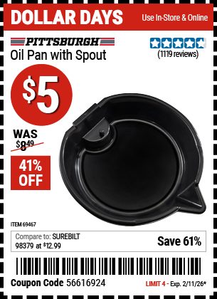 PITTSBURGH OIL PAN WITH SPOUT Lot No. 69467 Expired: 10/10/24 - $4.99 Coupon Code: 'n/a'