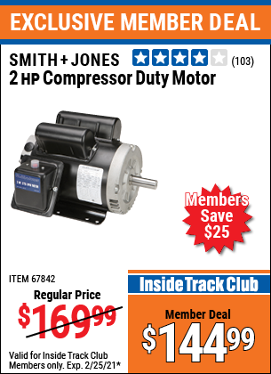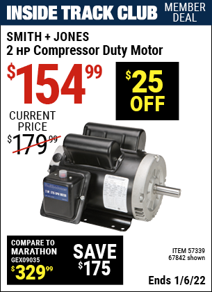 ITC SMITH + JONES 2HP COMPRESSOR DUTY MOTOR Lot No. 67842 Expired: 2/25/21 - $144.99 Coupon Code: 'n/a'