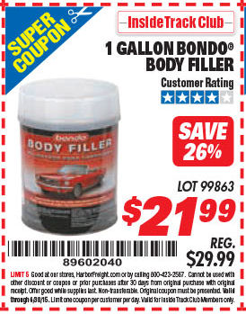 ITC 1 GALLON BONDO BODY FILLER Lot No. 99863 Expired: 6/30/15 - $21.99 Coupon Code: '89602040'