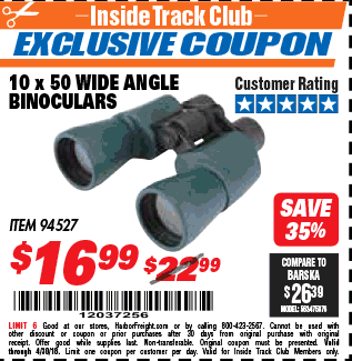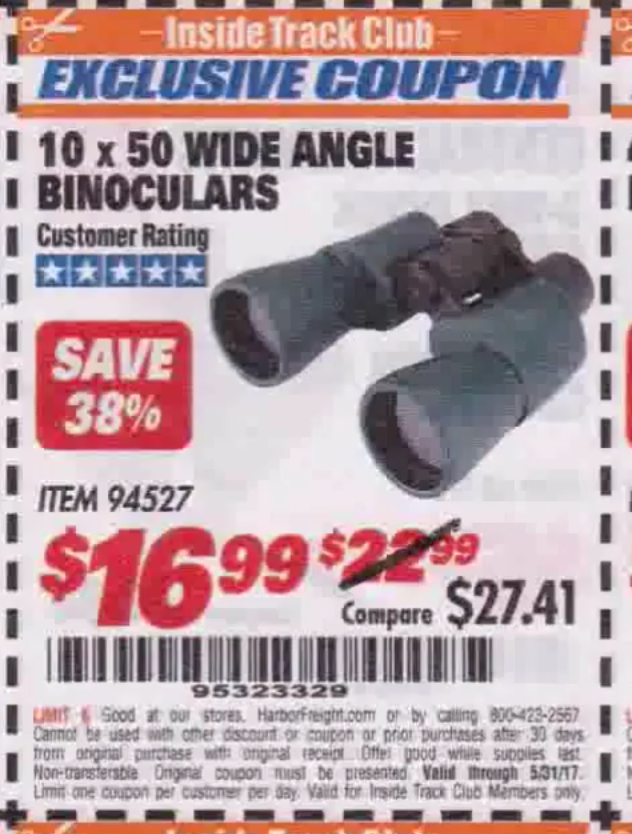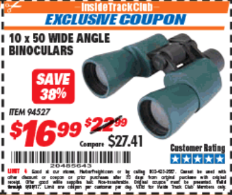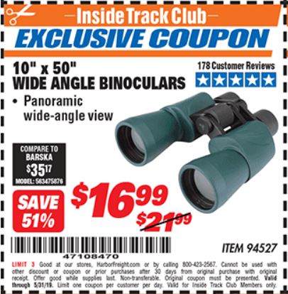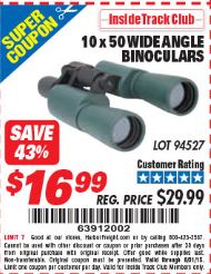 ITC 10 X 50 WIDE ANGLE BINOCULARS Lot No. 94527 Expired: 5/31/17 - $16.99 Coupon Code: '95323329'