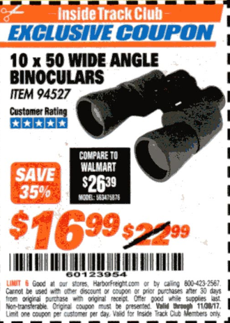 ITC 10 X 50 WIDE ANGLE BINOCULARS Lot No. 94527 Expired: 11/30/17 - $16.99 Coupon Code: '60123954'