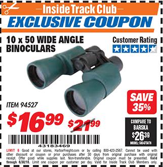 10 X 50 WIDE ANGLE BINOCULARS Lot No. 94527 Expired: 6/6/24 - $14.99 Coupon Code: '66817259'