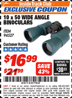 ITC 10 X 50 WIDE ANGLE BINOCULARS Lot No. 94527 Expired: 10/31/20 - $16.99 Coupon Code: 'n/a'