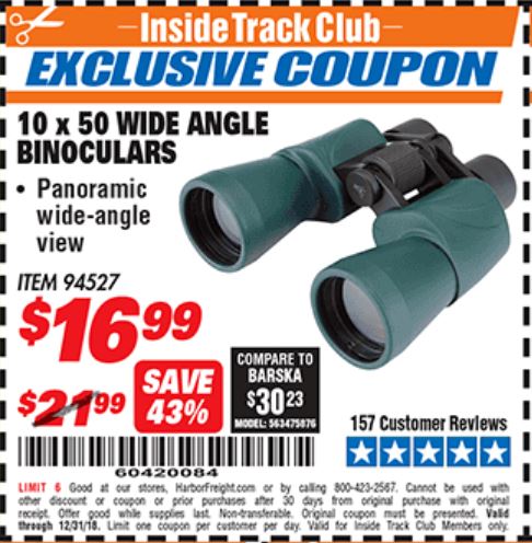 ITC 10 X 50 WIDE ANGLE BINOCULARS Lot No. 94527 Expired: 12/31/18 - $16.99 Coupon Code: '60420084'