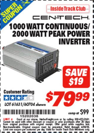 ITC 1000 WATT CONTINUOUS/2000 WATT PEAK POWER INVERTER Lot No. 61631/60704 Expired: 4/30/16 - $79.99 Coupon Code: '15202038'