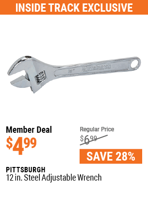 12" ADJUSTABLE WRENCH Lot No. 69545/60717/63720/65802 Expired: 4/13/23 - $4.99 Coupon Code: '94863267'
