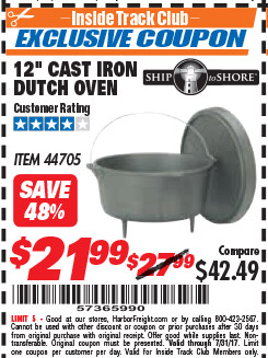 ITC 12" CAST IRON DUTCH OVEN Lot No. 44705 Expired: 7/31/17 - $21.99 Coupon Code: '57365990'