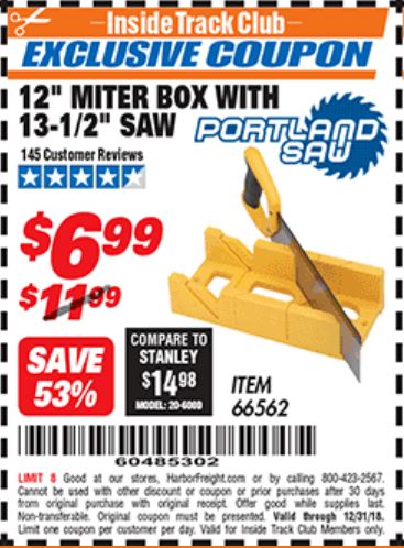 ITC 12" MITER BOX WITH 13-1/2" SAW Lot No. 66562 Expired: 12/31/18 - $6.99 Coupon Code: '60485302'
