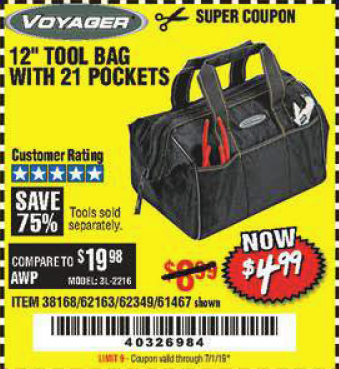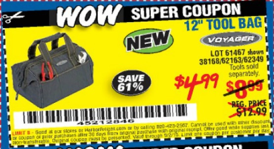 12" TOOL BAG Lot No. 61467/62163/62349 Expired: 9/2/15 - $4.99 Coupon Code: '45212846'