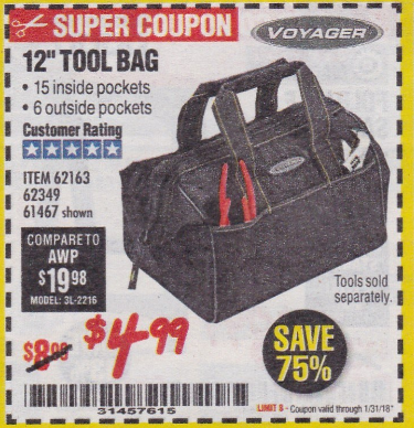 12" TOOL BAG Lot No. 61467/62163/62349 Expired: 1/31/18 - $4.99 Coupon Code: '31457615'