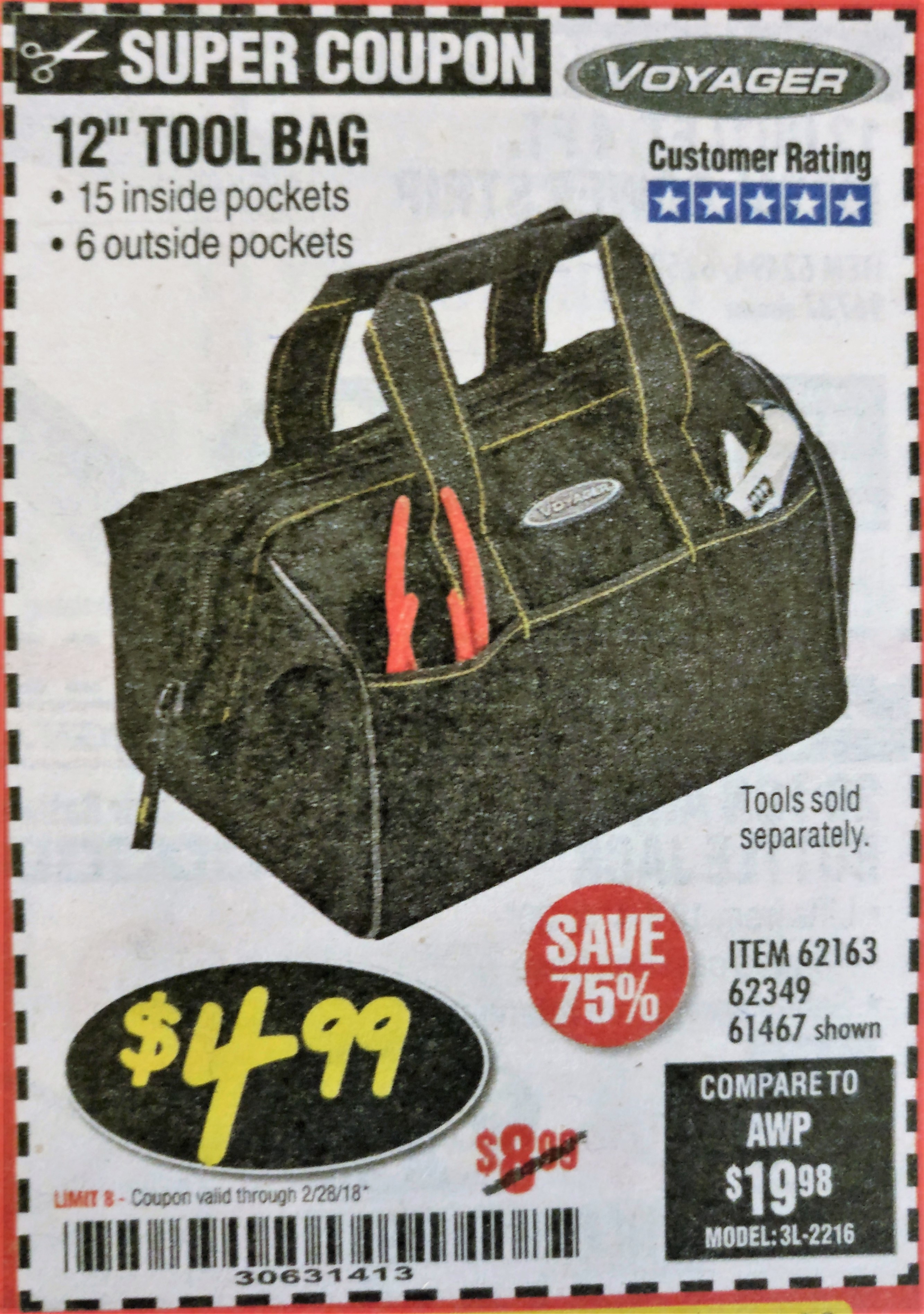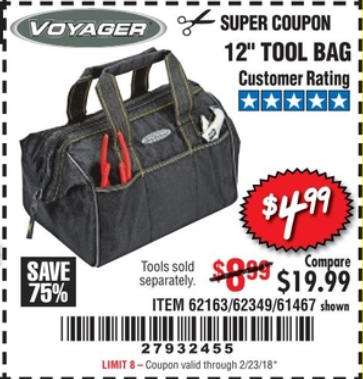 12" TOOL BAG Lot No. 61467/62163/62349 Expired: 2/28/18 - $4.99 Coupon Code: '30631413'