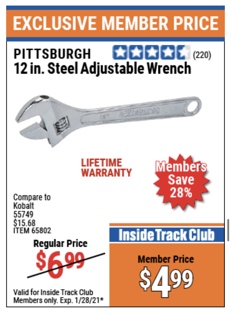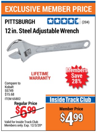 ITC 12 IN. STEEL ADJUSTABLE WRENCH - PITTSBURGH Lot No. 55749 Expired: 12/3/20 - $4.99 Coupon Code: 'n/a'