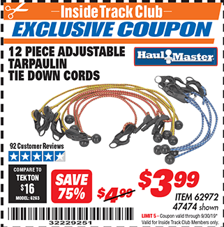 ITC 12 PIECE ADJUSTABLE TARPAULIN TIE DOWN CORDS Lot No. 62972/47474 Expired: 8/31/20 - $3.99 Coupon Code: '30370754'
