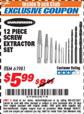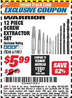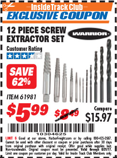 ITC 12 PIECE SCREW EXTRACTOR SET Lot No. 61981 Expired: 10/31/17 - $5.99 Coupon Code: '31982674'