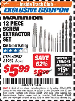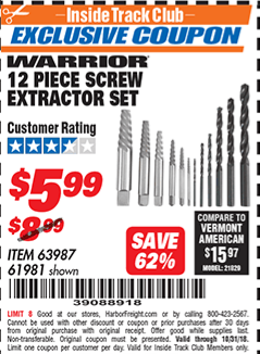 ITC 12 PIECE SCREW EXTRACTOR SET Lot No. 61981 Expired: 10/31/18 - $5.99 Coupon Code: '39088918'